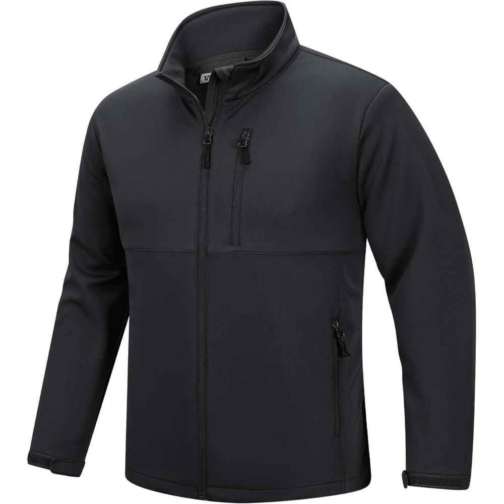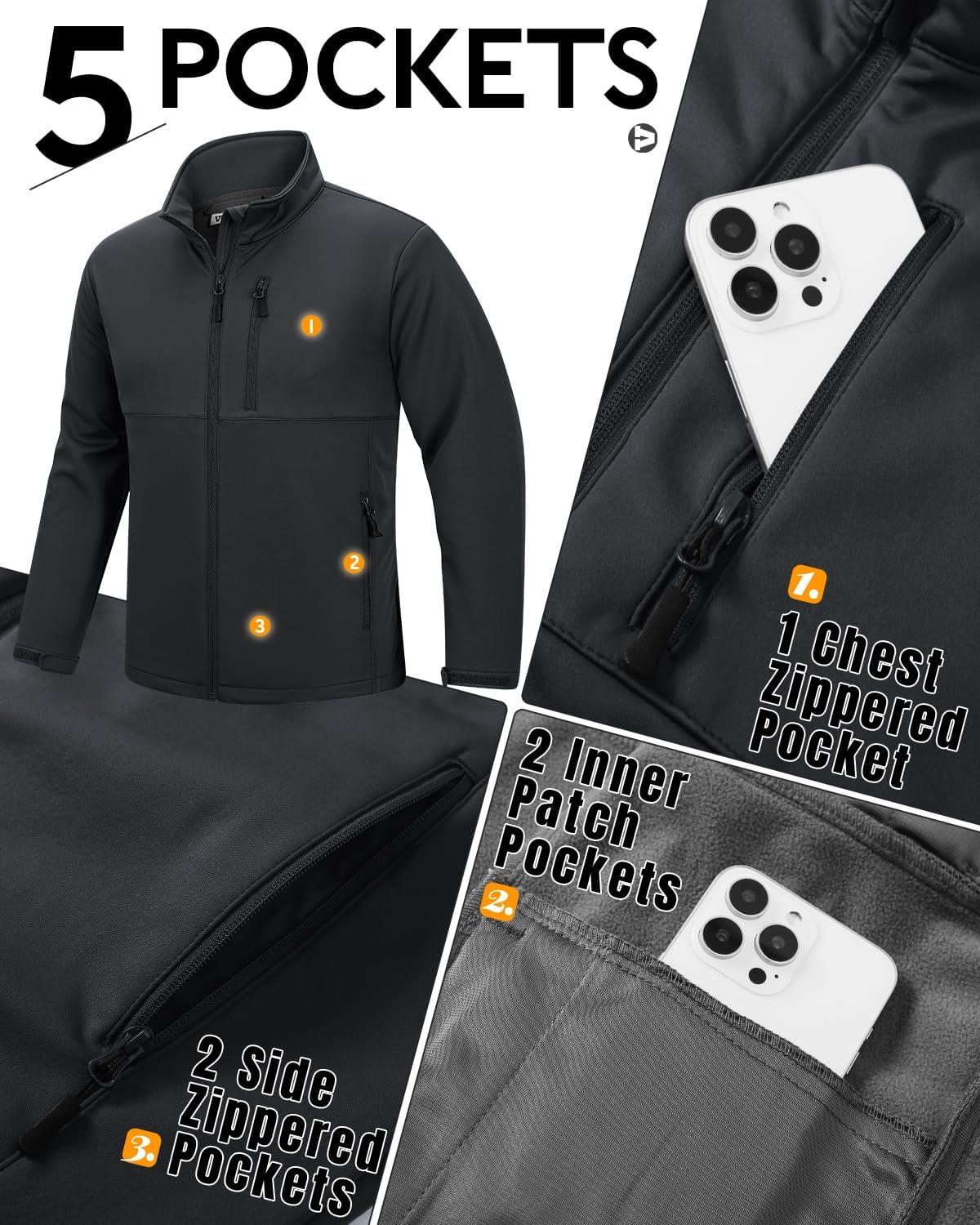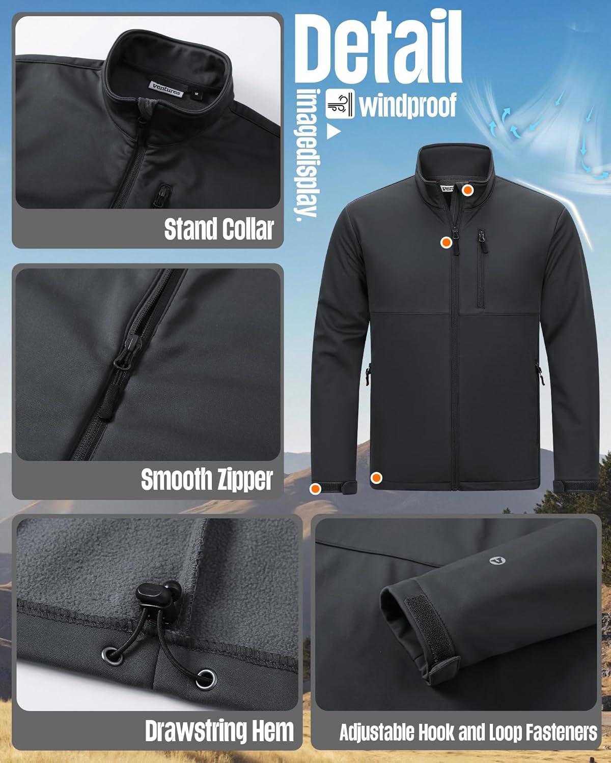 Outdoor Ventures Men’s Softshell Jacket Waterproof Fleece Lined Rain Shell Jacket Lightweight Windbreaker for Hiking Travel(Grey)
