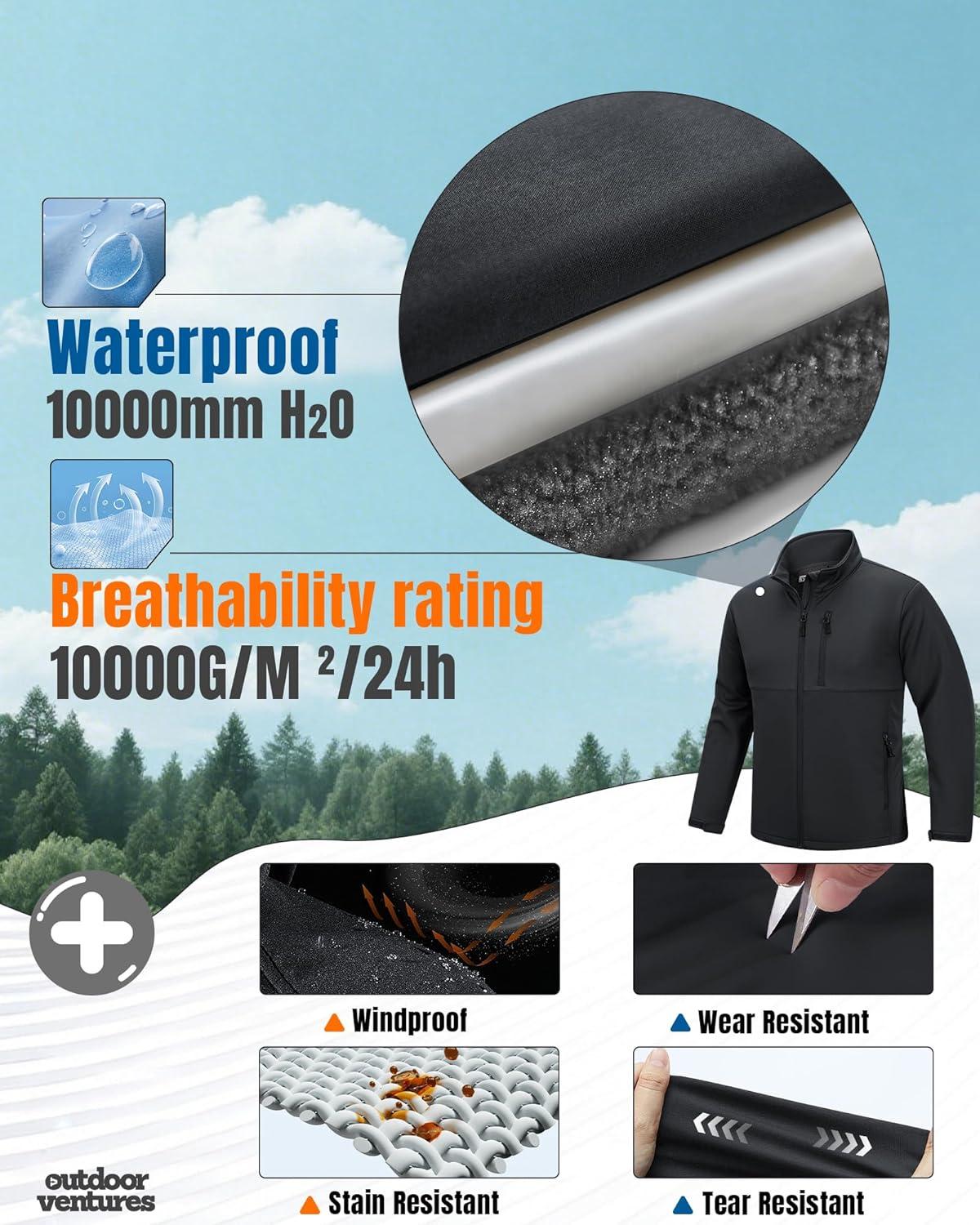 Outdoor Ventures Men’s Softshell Jacket Waterproof Fleece Lined Rain Shell Jacket Lightweight Windbreaker for Hiking Travel(Blue)