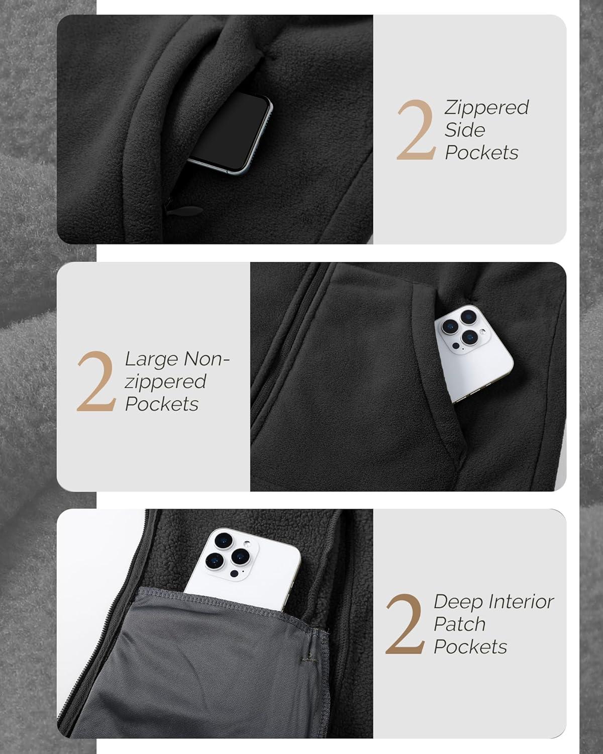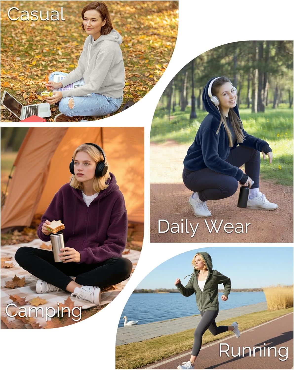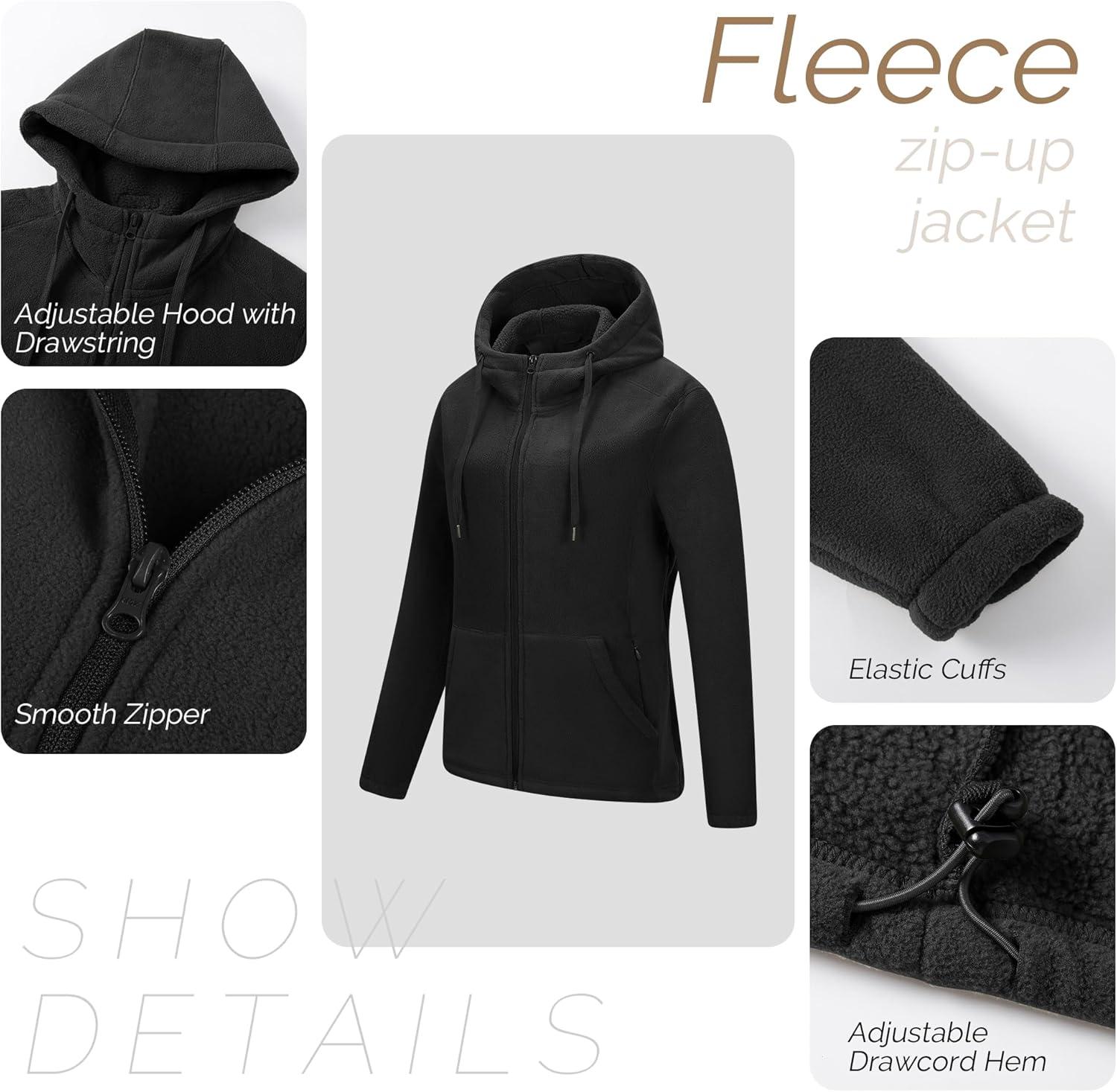 Outdoor Ventures Women’s Full Zip Hooded Fleece Jacket Coat with 6 Pockets, Warm Soft Polar Fleece Casual Hoodie Sweatshirt(Black)