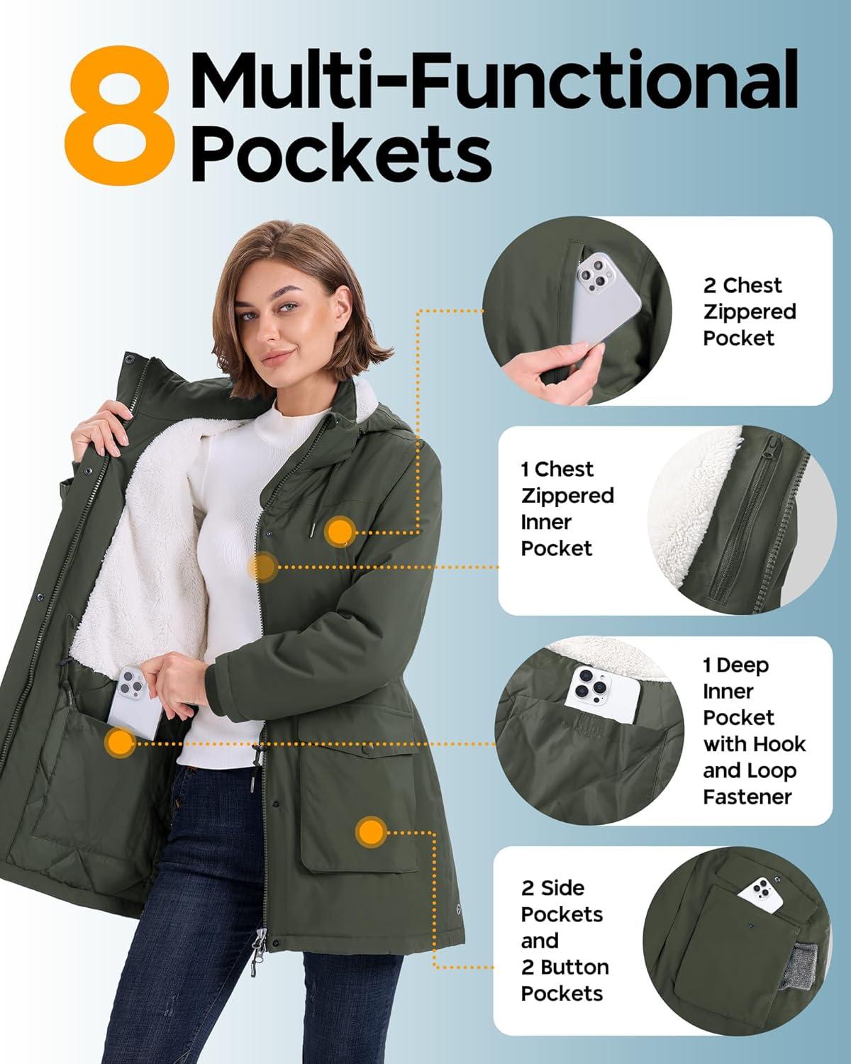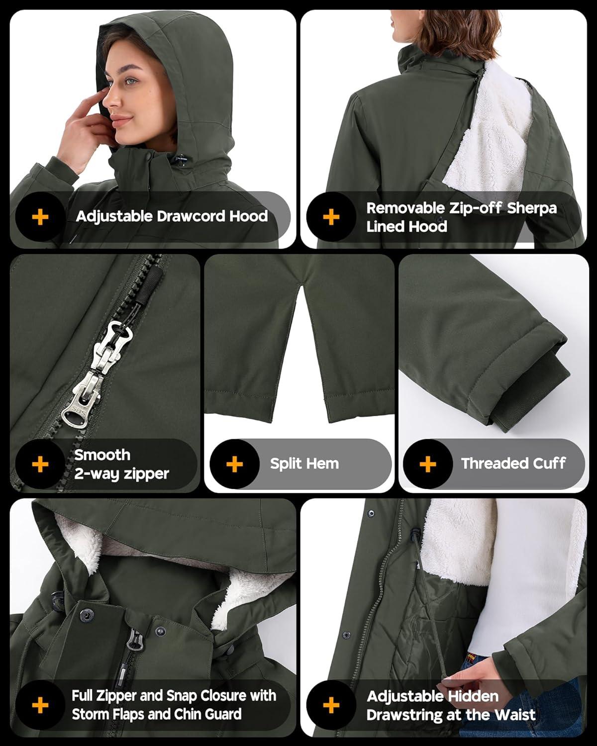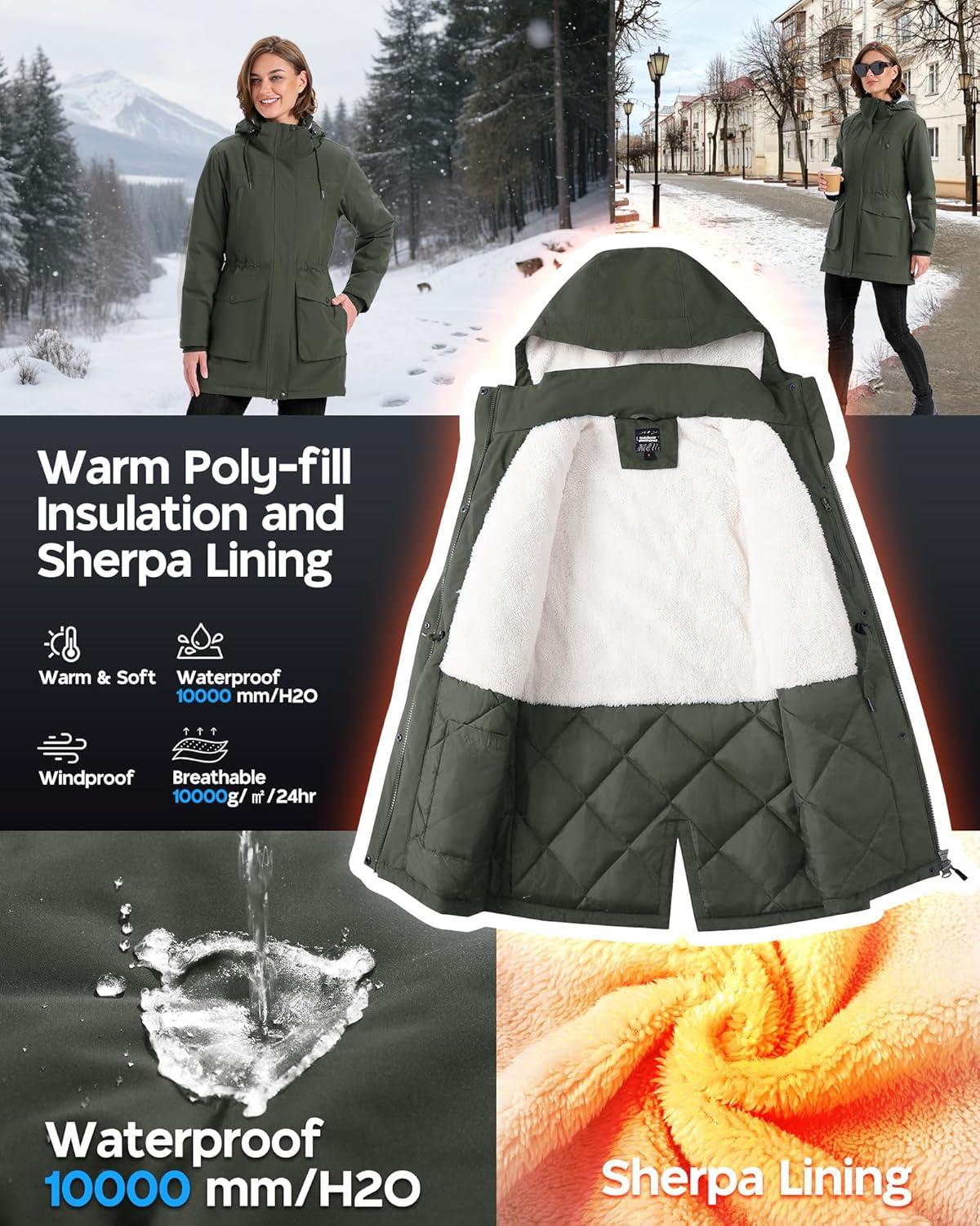 Don’t miss out on our limited-time offer: buy Outdoor Ventures Women’s Waterproof Fleece Lined Winter Coat Parka Removable Hood Warm Long Insulated Thicken Puffer Jacket(Greenish Brown), get {accessory} 50% off!
